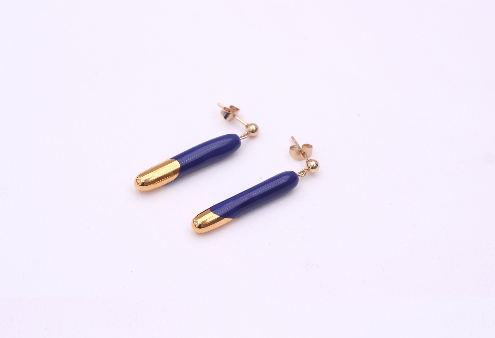 Handmade gold plated earrings, blue, gold