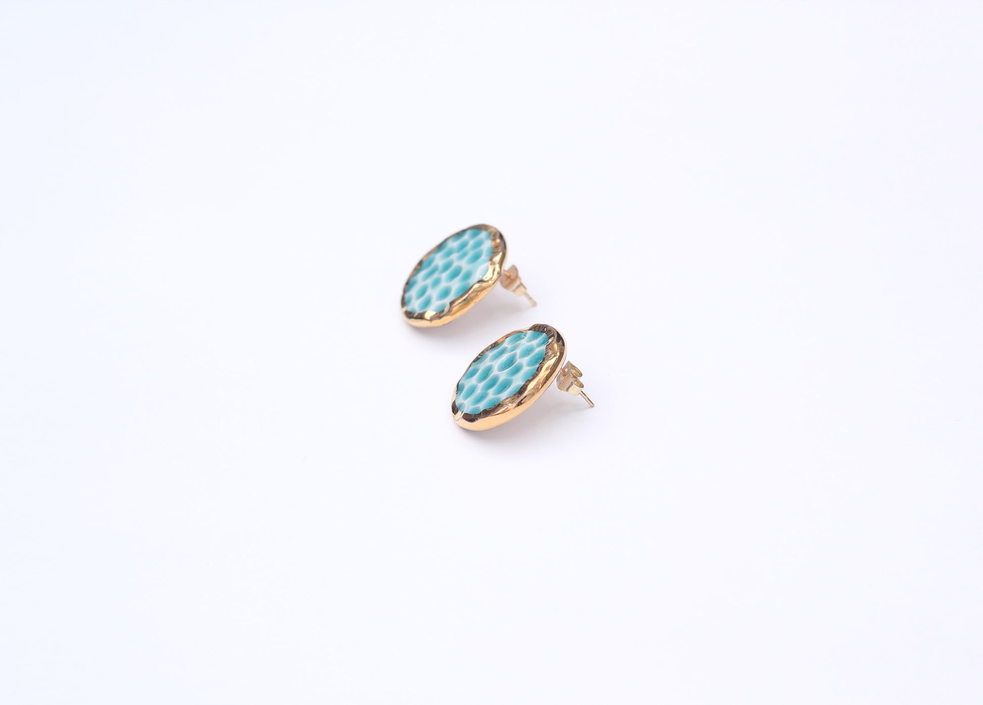Handmade gold plated round earrings, turquoise, gold