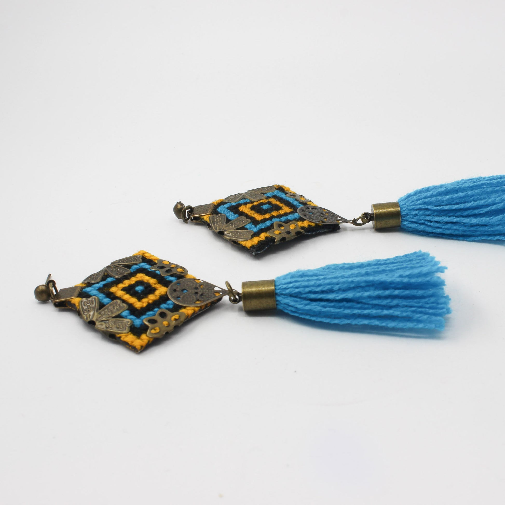 Handmade Balochi embroidered earrings and bracelet, yellow, blue