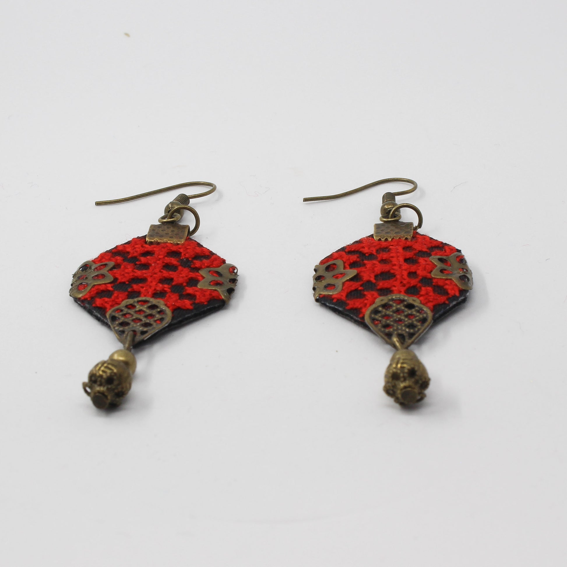 Handmade Balochi embroidered earrings and bracelet, red, gold
